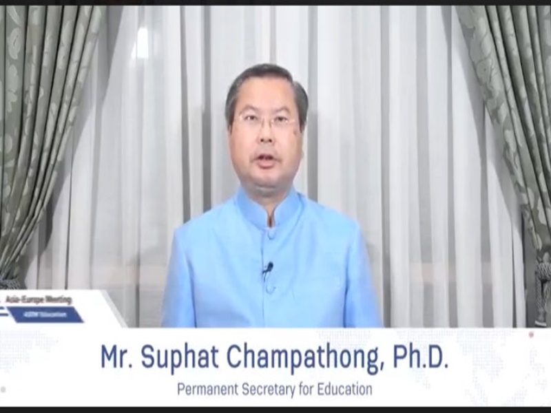 นายสุภัทร จำปาทอง ปลัดกระทรวงศึกษาธิการได้กล่าวเปิดการประชุมผ่านการบันทึกวิดีทัศน์ โดยได้ขอบคุณผู้เข้าร่วมการประชุม เจ้าหน้าที่จากสำนักเลขาธิการด้านการศึกษาของอาเซม (ASEM Education Secretariat – AES) ที่ได้ให้ความร่วมมืออย่างดียิ่งต่อการจัดประชุมฯ ครั้งนี้ รวมถึงกล่าวขอบคุณ ดร. ธีรเกียรติ เจริญเศรษฐศิลป์ อดีตรัฐมนตรีว่าการกระทรวงศึกษาธิการ ที่ได้ให้เกียรติกล่าวปาฐกถาเพื่อช่วยจุดประกายความคิดในการพัฒนาความร่วมมือด้านการศึกษาของอาเซมในอนาคต การประชุมครั้งนี้จัดขึ้นเพื่อเป็นเวทีแลกเปลี่ยนความคิดเห็นเกี่ยวกับยุทธศาสตร์ด้านการศึกษาของอาเซม (ASEM Education Strategy 2030) และแผนปฏิบัติการด้านการศึกษาของอาเซม (ASEM Education Pan 2030) โดยประเทศไทยสนับสนุนยุทธศาสตร์ด้านการศึกษาของอาเซม 4 ประการ ได้แก่ การประกันคุณภาพและการรับรองคุณวุฒิทางการศึกษา (Quality Assurance and Recognition) การส่งเสริมการมีส่วนร่วมของภาคธุรกิจและอุตสาหกรรมในการศึกษา (Engaging Business and Industry in Education) การเคลื่อนที่อย่างสมดุล(Balanced Mobility) และการเรียนรู้ตลอดชีวิตและการศึกษาด้านเทคนิคและอาชีวศึกษา (Lifelong Learning and Technical and Vocational Education and Training) นอกจากนี้ ยังสนับสนุนการดำเนินการเพื่อบรรลุเป้าหมายการจัดการศึกษาที่มีคุณภาพอย่างครอบคลุม และเสมอภาคที่สอดคล้องเป้าหมายที่ 4 ด้านการศึกษาของวาระการพัฒนาที่ยั่งยืน โดยประเทศไทยยินดีที่จะร่วมมือกับอาเซมในการขับเคลื่อนสู่การบรรลุเป้าหมายดังกล่าวให้บรรลุผล