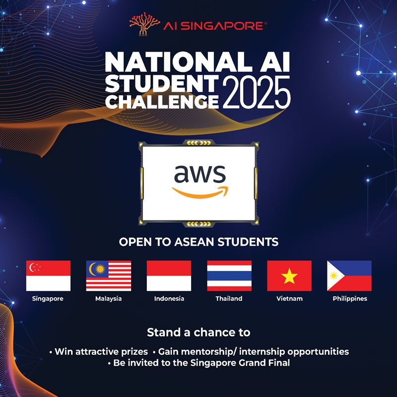 AI Singapore ร่วมมือกับ Amazon Web Services (AWS) เปิดตัว Regional Large Language Models League (LLM) สำหรับนักเรียนในภูมิภาคอาเซียน โดยเฉพาะอย่างยิ่งประเทศสิงคโปร์ มาเลเซีย ไทย อินโดนีเซีย เวียดนาม และฟิลิปปินส์ และจัดการแข่งขัน National AI Student Challenge 2025 (NAISC) ครั้งที่ 3 เพื่อสนับสนุนการเสริมสร้างศักยภาพของนักศึกษาอาเซียนด้านปัญญาประดิษฐ์ (AI) พร้อมทั้งส่งเสริมการสร้างสรรค์นวัตกรรม และพัฒนาเยาวชนรุ่นใหม่ให้เป็นผู้สร้างสรรค์ AI ที่สามารถรับมือกับความท้าทายในโลกได้อย่างมีประสิทธิภาพ