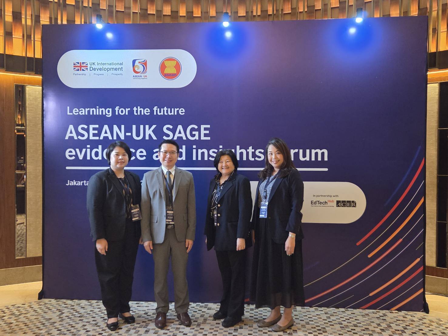 เมื่อวันที่ 2 – 3 มีนาคม 2569 / ปลัดกระทรวงศึกษาธิการมอบหมาย นางกุสุมา นวพันธ์พิมล ผู้เชี่ยวชาญเฉพาะด้านพัฒนานโยบายความร่วมมือต่างประเทศ สำนักความสัมพันธ์ต่างประเทศ สป. ดร.ภูริวรรษ คำอ้ายกาวิน ผู้อำนวยการสำนักวิชาการและมาตรฐานการศึกษา สพฐ. นางสาวกนกวรรณ แกว่นถิ่นภู และ นางสาวพิชญสุดา พลเสน นักวิเทศสัมพันธ์ชำนาญการ ในฐานะผู้ประสานงานความร่วมมือกับองค์การซีมีโอและความร่วมมือด้านการศึกษากับอาเซียน สำนักความสัมพันธ์ต่างประเทศ สป. เป็นผู้แทนกระทรวงศึกษาธิการไทยเข้าร่วมการประชุม “ASEAN-UK SAGE Regional Dissemination” ณ โรงแรม AYANA Midplaza Jakarta กรุงจาการ์ตา สาธารณรัฐอินโดนีเซีย