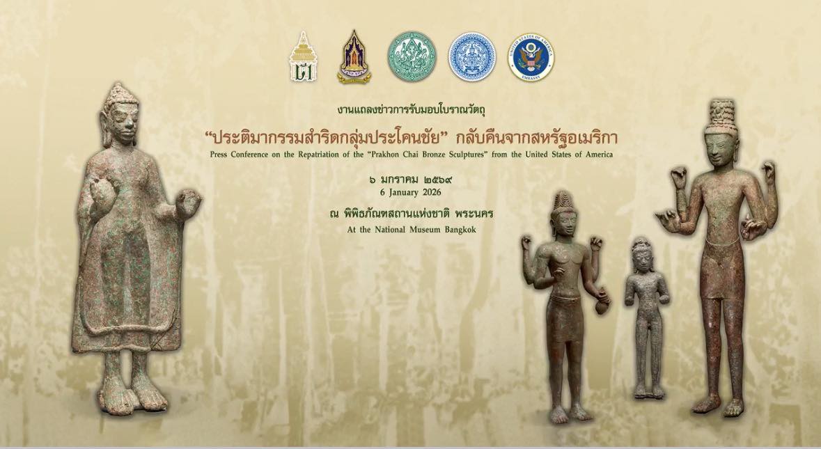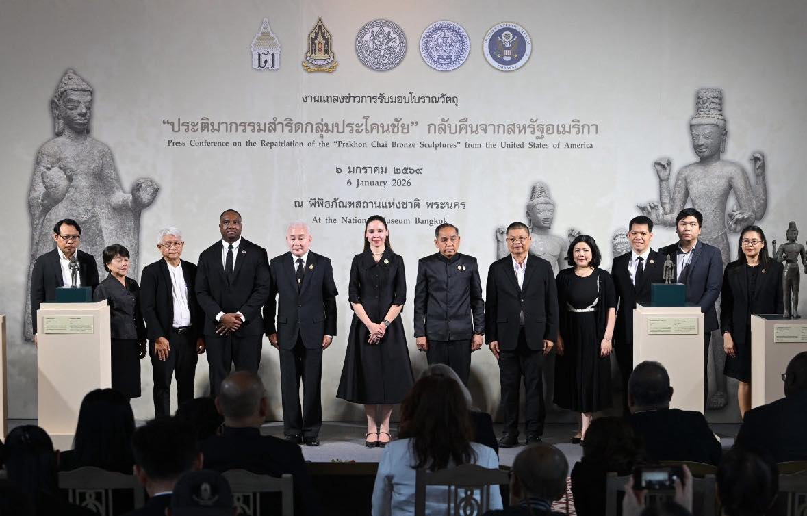 เมื่อวันอังคารที่ 6 มกราคม 2569 เวลา 14.00 น.ณ พิพิธภัณฑสถานแห่งชาติ พระนคร นางสาวจิตรลดา จันทร์แหยม ผู้อำนวยการสำนักความสัมพันธ์ต่างประเทศ เข้าร่วมงานแถลงข่าวการรับมอบโบราณวัตถุ “ประติมากรรมสำริดกลุ่มประโคนชัย” ซึ่งประกอบด้วยพระพุทธรูป 1 องค์ และพระโพธิสัตว์อวโลกิเตศวร 3 องค์ อายุกว่า 1,200 ปี กลับคืนจากสหรัฐอเมริกา โดยเป็นความร่วมมือของคณะกรรมการติดตามโบราณวัตถุของไทยในต่างประเทศ กรมศิลปากร กระทรวงการต่างประเทศ และหน่วยสืบสวนเพิ่มความมั่นคงแห่งมาตุภูมิของสหรัฐฯ (Homeland Security Investigations: HSI) และหลังจากนั้น ผู้อำนวยการสำนักความสัมพันธ์ต่างประเทศได้เข้าร่วมการประชุมคณะกรรมการติดตามโบราณวัตถุของไทยในต่างประเทศกลับคืนสู่ประเทศไทย ครั้งที่ 1/2569 โดยมีนางสาวซาบีดา ไทยเศรษฐ์ รัฐมนตรีว่าการกระทรวงวัฒนธรรม เป็นประธาน