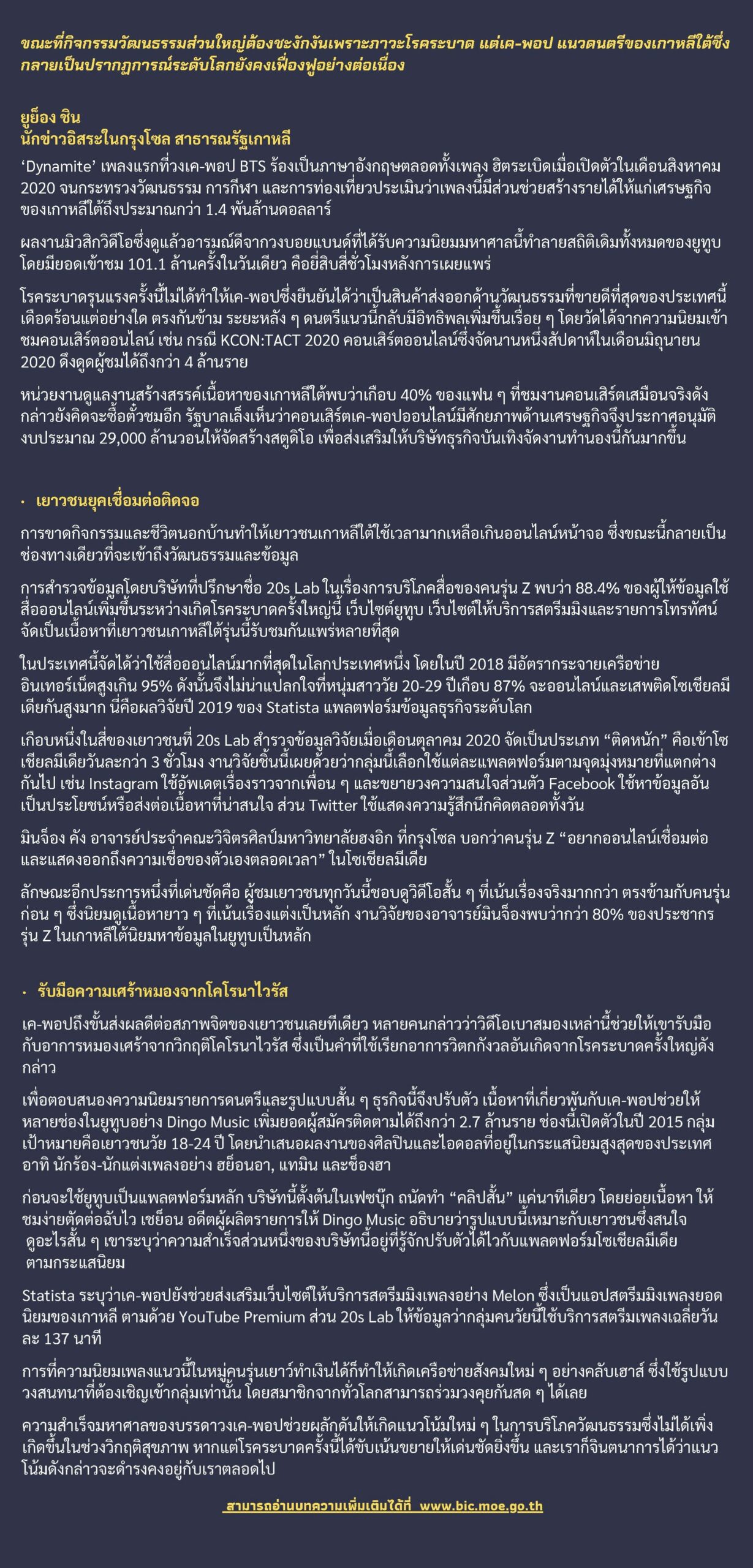 เค-พอป สิ่งเยียวยาอาการหมองเศร้าจากโรคระบาดครั้งใหญ่
