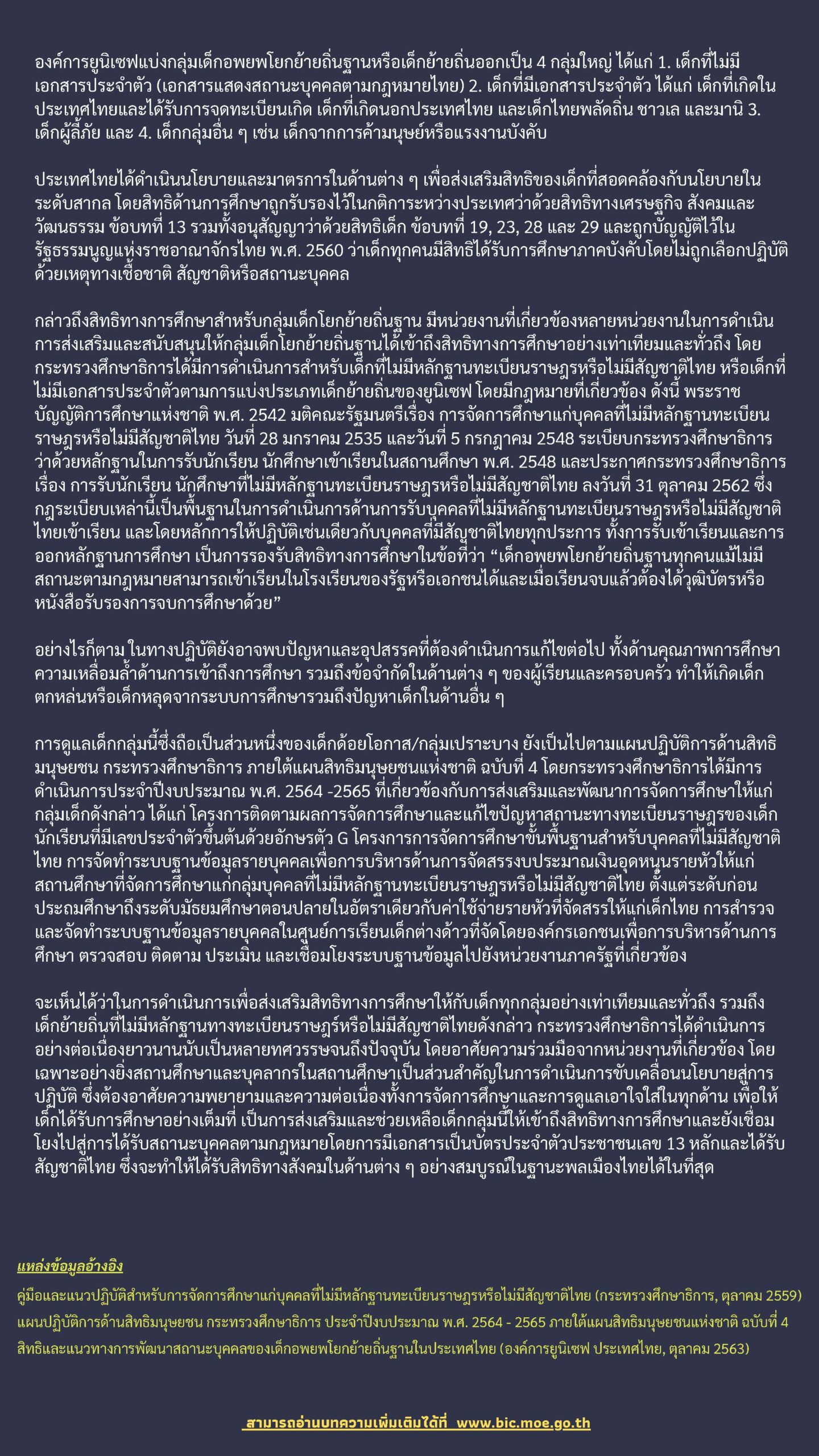 การส่งเสริมการเข้าถึงสิทธิทางการศึกษาสำหรับกลุ่มเด็กโยกย้ายถิ่นฐาน