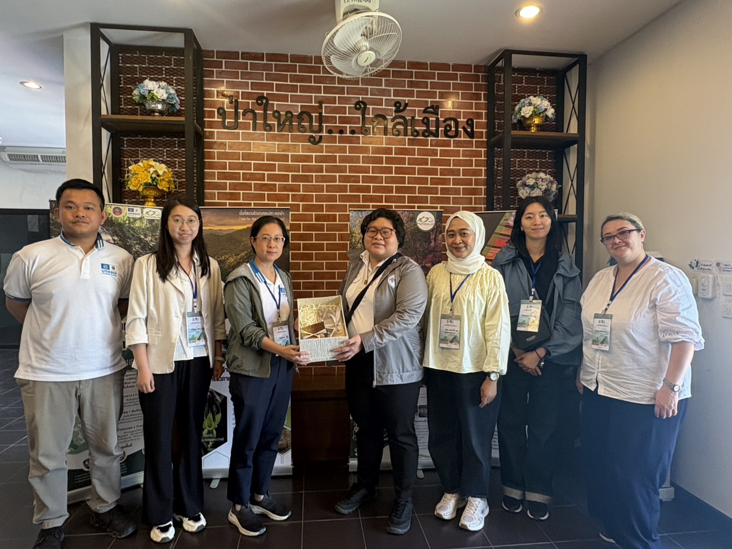 ในช่วงบ่าย ผู้เข้าร่วมโครงการได้ศึกษาดูงาน ณ พื้นที่สงวนชีวมณฑลแม่สา – คอกม้า ซึ่งอยู่ในอุทยานแห่งชาติดอยสุเทพ – ปุย โดยมีนางสาวนฤมล เลาสุวรรณ์ หัวหน้าฝ่ายพื้นที่สงวนชีวมณฑล ส่วนมรดกโลกทางธรรมชาติและพื้นที่สงวนชีวมณฑล กรมอุทยานแห่งชาติ สัตว์ป่า และพันธุ์พืช และทีมงาน ให้การต้อนรับและบรรยายเกี่ยวกับกรอบการดำเนินงานที่ใช้ BCG Economic Model การสร้างการรับรู้แก่สาธารณะ และการอนุรักษ์ความหลากหลายทางชีวภาพและระบบนิเวศ จากนั้น ผู้เข้าร่วมโครงการได้เยี่ยมชมน้ำตกมณฑาธารซึ่งเป็นต้นน้ำของคลองแม่ข่า และวัดพระธาตุดอยสุเทพราชวรวิหาร
