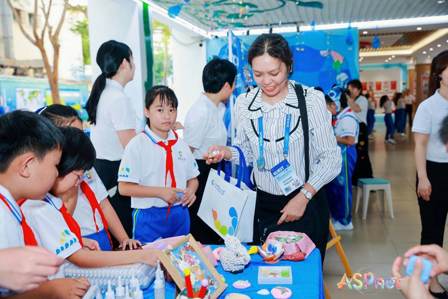 นอกจากนี้ ผู้จัดงานได้นำผู้เข้าร่วมประชุมเดินทางไปศึกษาดูงานยังสถานที่สำคัญและโรงเรียน โดยในส่วนของผู้แทนสำนักเลขาธิการฯ ได้ไปเยี่ยมชมการเรียนการสอนของโรงเรียน Sanya No.9 Primary School เป็นโรงเรียนประถมศึกษาของรัฐที่มีลักษณะเฉพาะ คือ บูรณาการ ocean literacy ในหลักสูตร เนื่องจากเมือง Sanya เป็นเมืองชายทะเลที่สำคัญทางเศรษฐกิจแห่งหนึ่งของจีน โรงเรียนจึงสร้างความตระหนักและปลูกฝังการอนุรักษ์สิ่งแวดล้อมทางทะเลแก่เด็กผ่านกิจกรรมในชั้นเรียน เช่น Wall of Sanya กำแพงโรงเรียนสร้างสรรค์เป็นโลกใต้ทะเล มีการวาดและประดับตกแต่งด้วยภาพสัตว์ทะเลต่างๆ เสมือนอยู่ในมหาสมุทร ประกอบกับผลงานของเด็กๆ ในการวาดภาพปลาและสัตว์ทะเลต่าง ๆ ในชั้นเรียนมีผลงานประดิษฐ์จากเปลือกหอยและวัสดุต่างๆ นักเรียนได้ความรู้พร้อมความคิดสร้างสรรค์ ผู้แทนสำนักเลขาธิการฯ ได้มีโอกาสพูดคุยกับ ผู้อำนวยการโรงเรียน และกิจกรรมกับนักเรียนที่จัดเตรียมไว้
